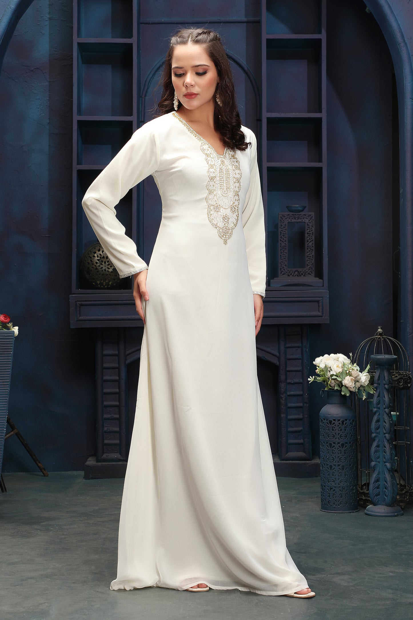 Designer Ivory Modest Dress with Clean Silhouette |