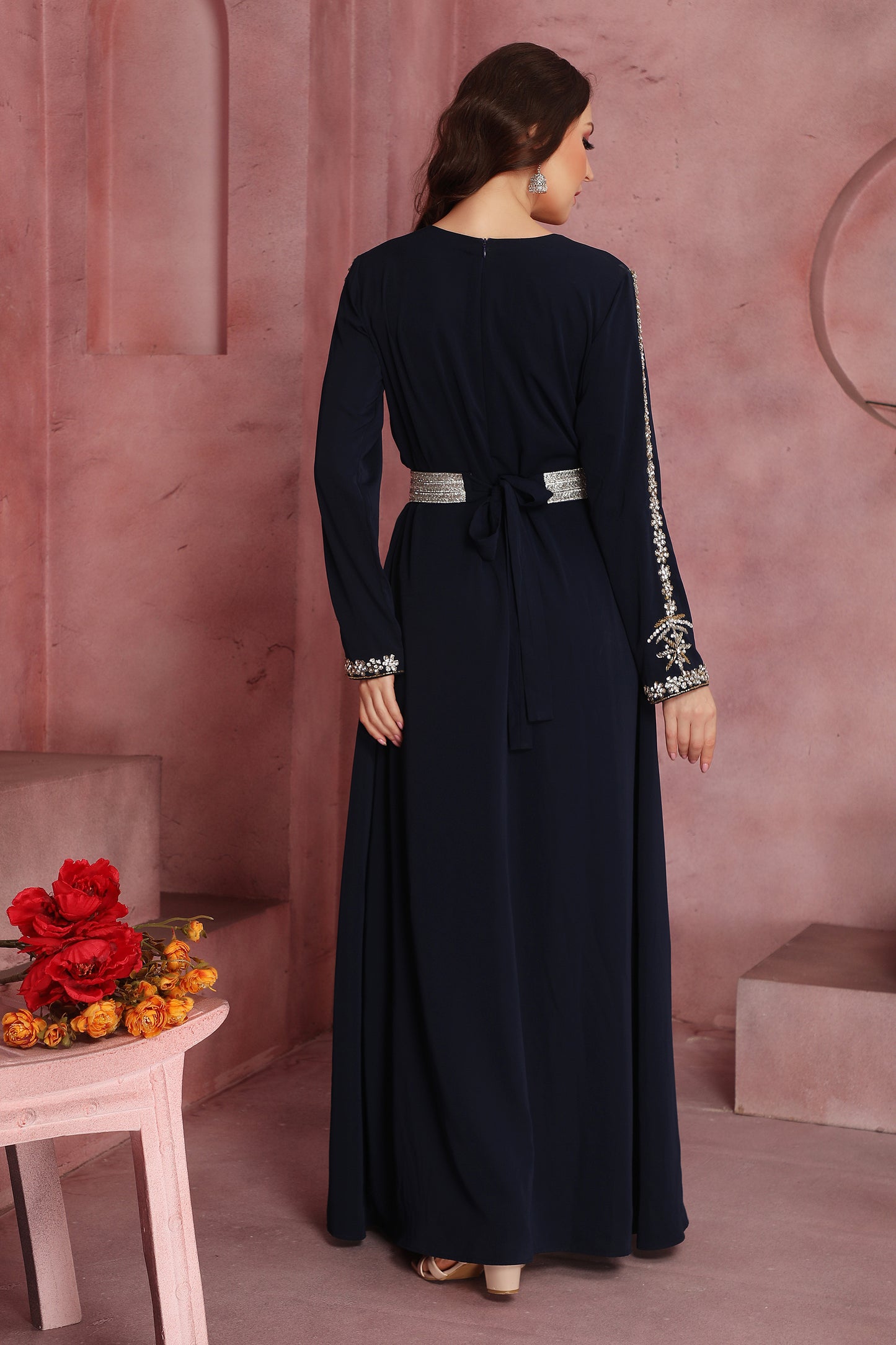 Navy Blue Embroidered Kaftan for Women |