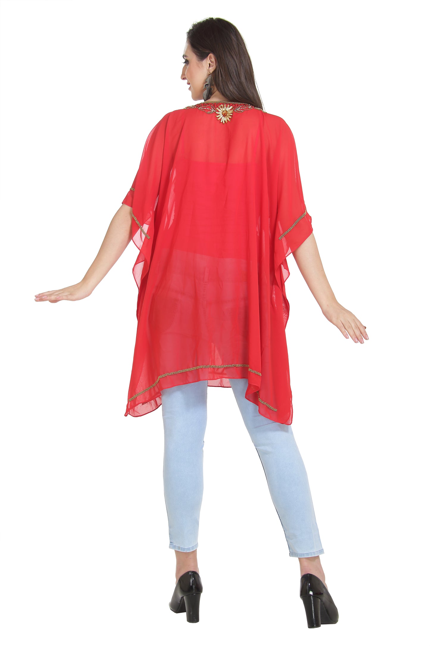 Suited with the perfect degree for flattery, try to leave your intimates in ideal state. 100% georgette short dress with half sleeve top. Comes as a 1 piece kurti attire without interior lining, and yet gives you adequate smoothness and coziness. This piece is best for traditional times in flowy fashion. Your maxim creation piece will help to contrast your occasion. This georgette fabric kurti dress is 1 piece set (top only) & half sleeve dress (This dress does not have lining from the inside). Fabric colour : 17 colour option (variation as pictured in the image options) Length : 35 Inch |