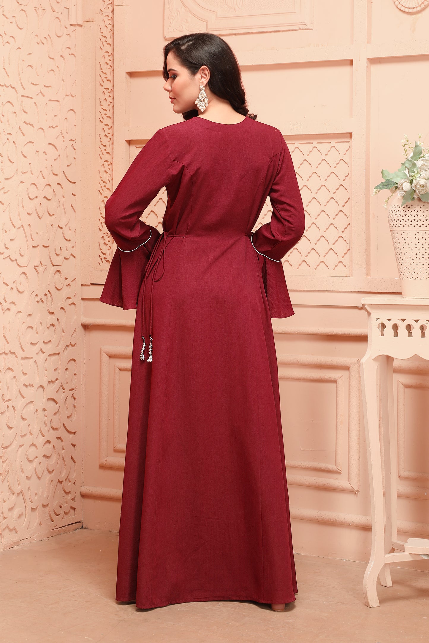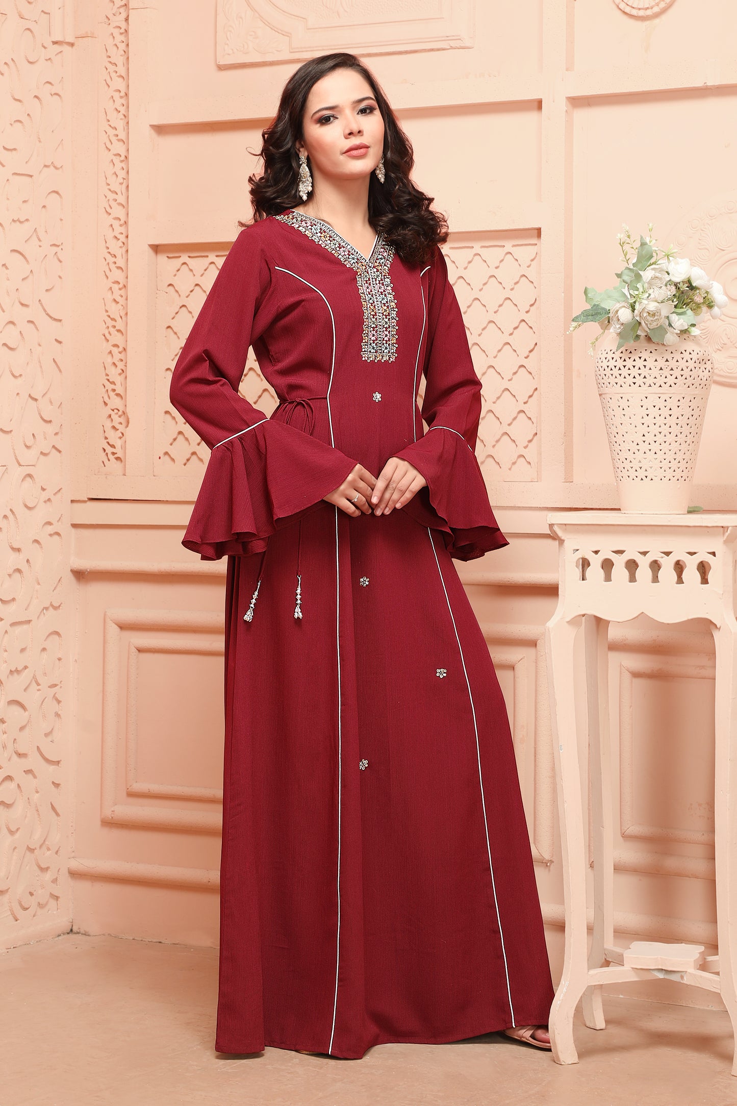 Designer Jalabiya in Maroon with Gold Embroidery |