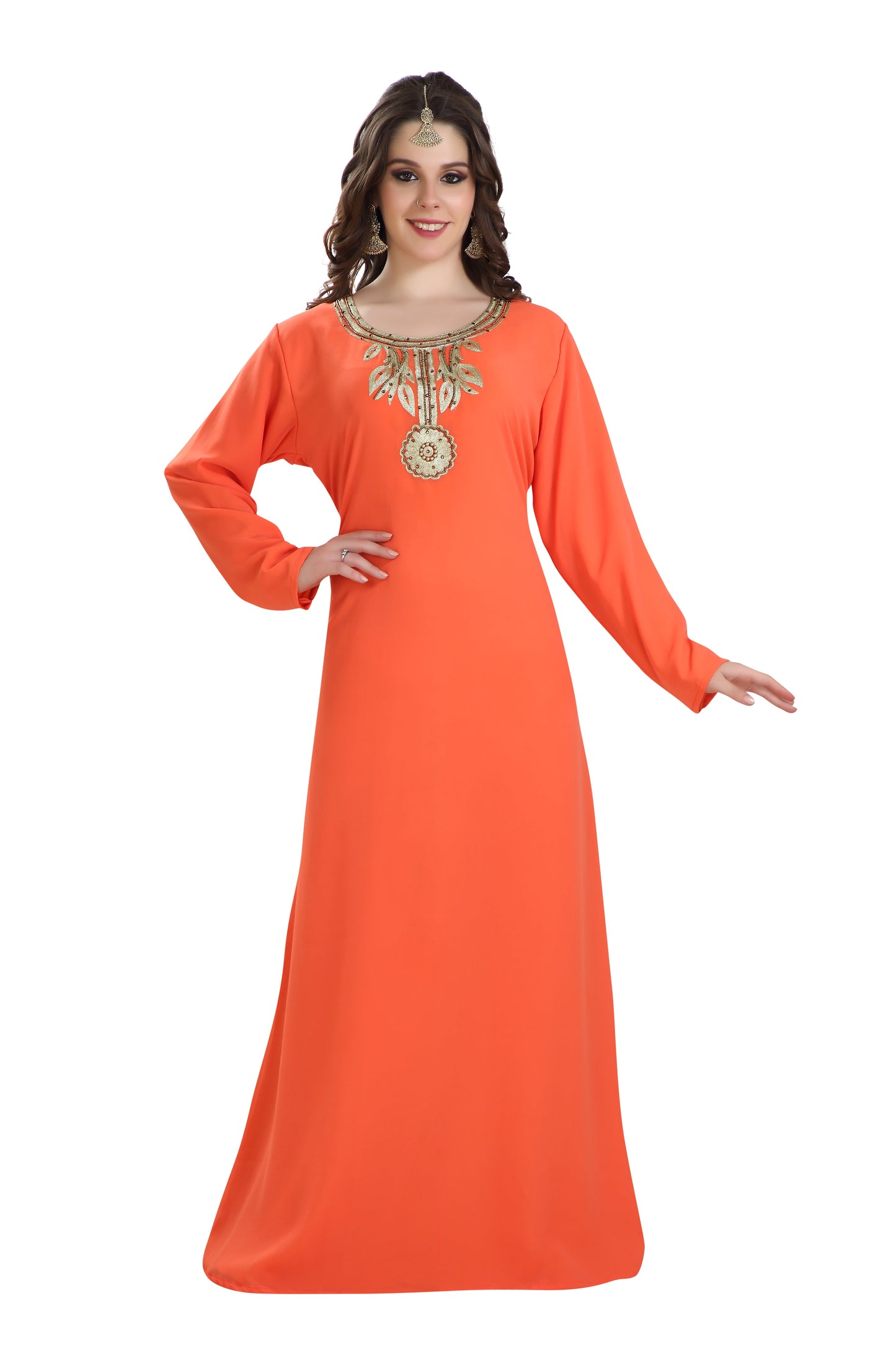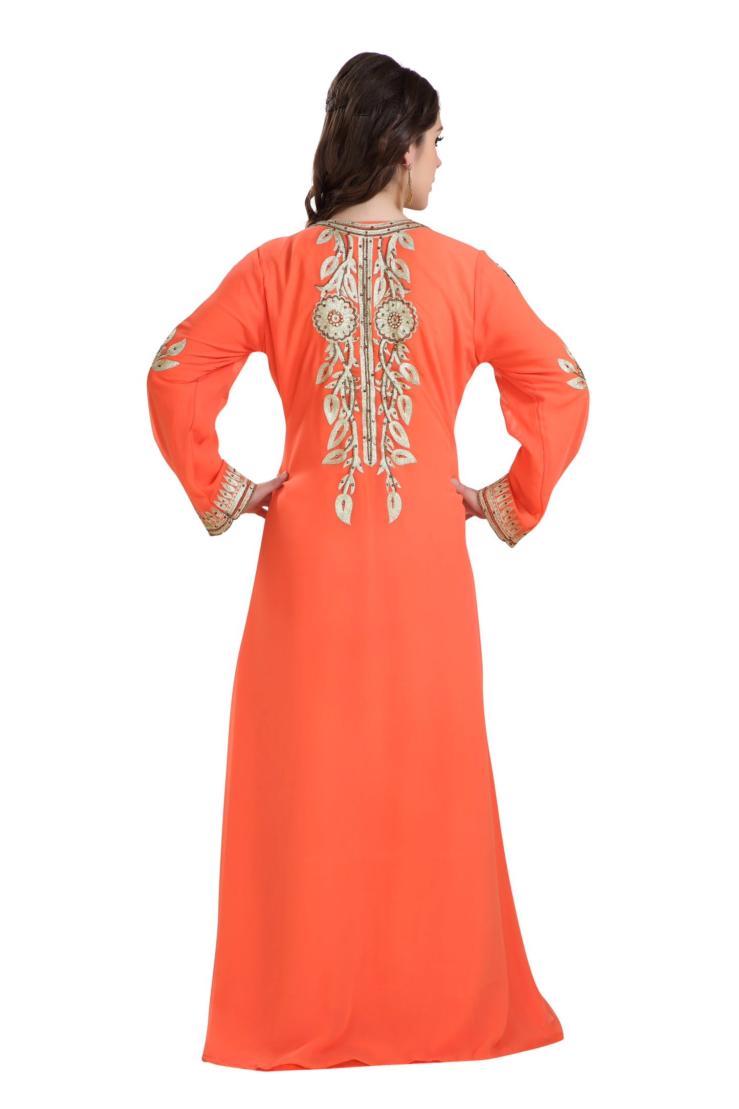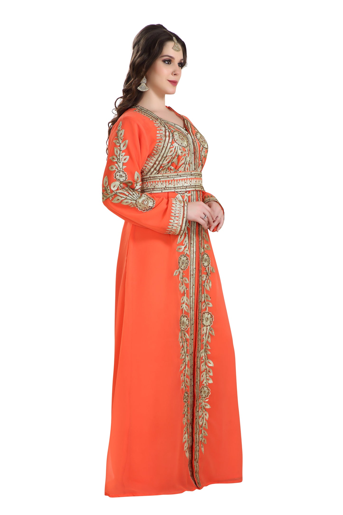Look ethnic with this Fashionable Dress. This Kaftan allures you with a Floral Pattern and is crafted with Ari Embroidered Work. This Box includes a 3 piece set and has a free belt. Suitable for your perfect wedding occasion and party events. |