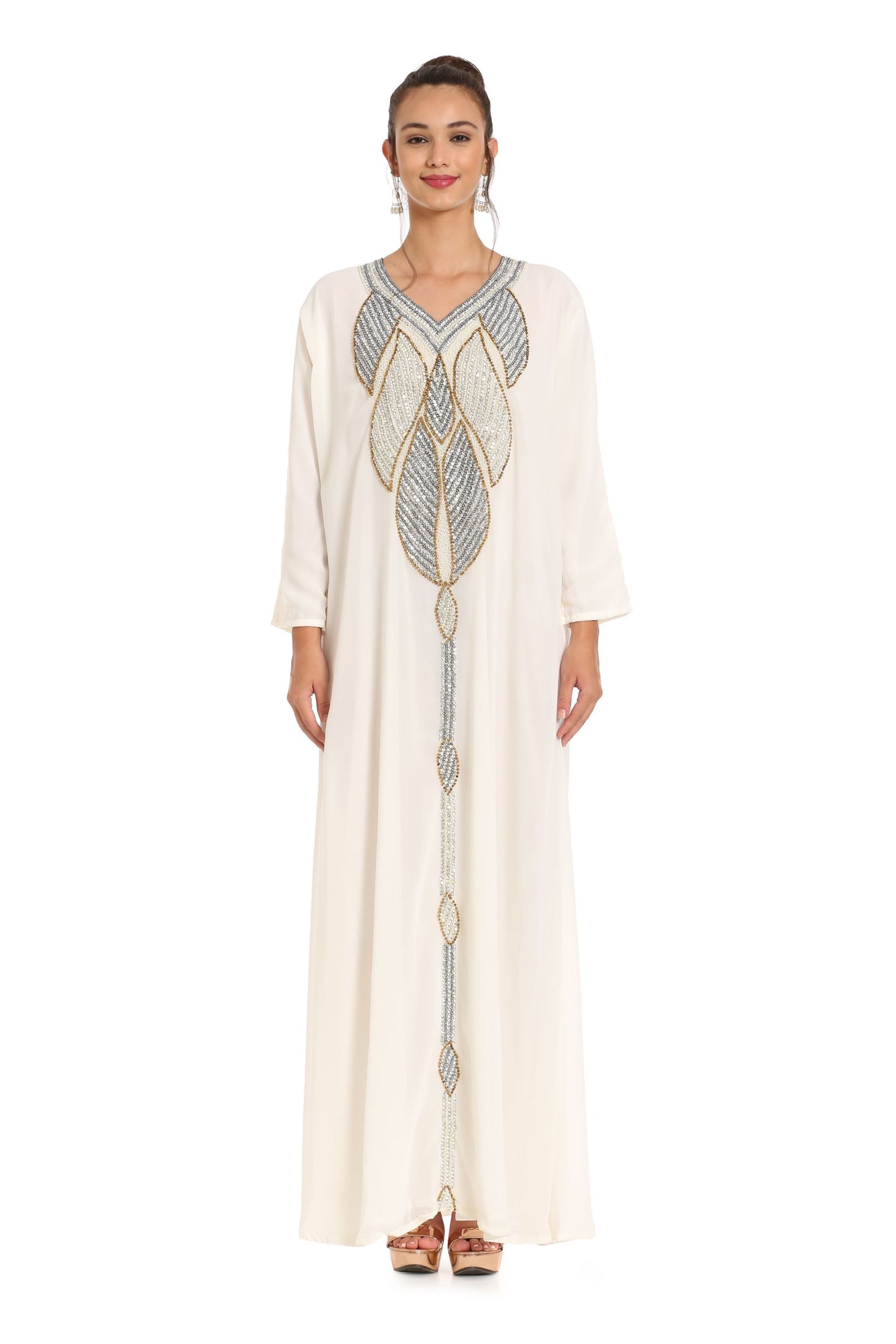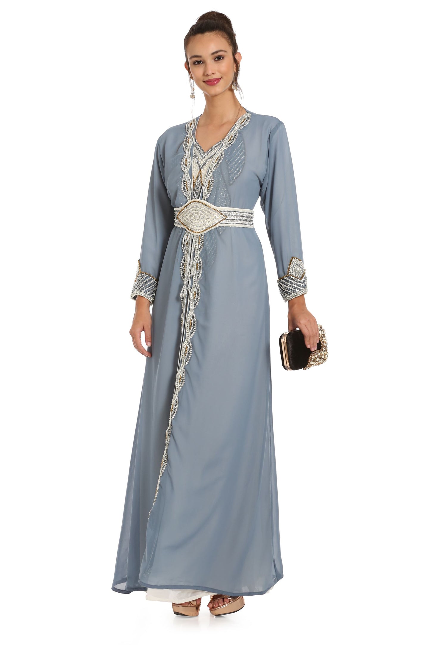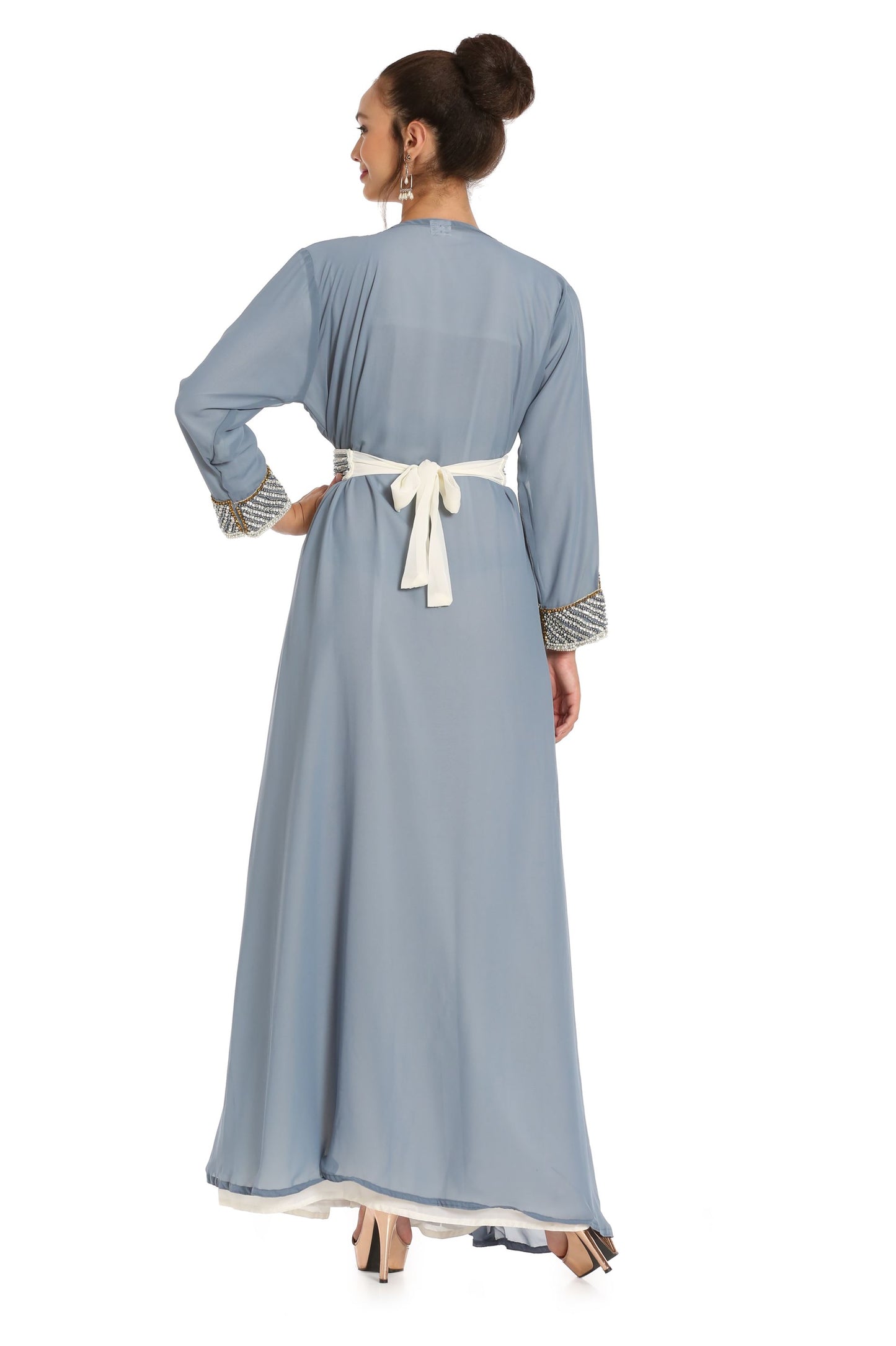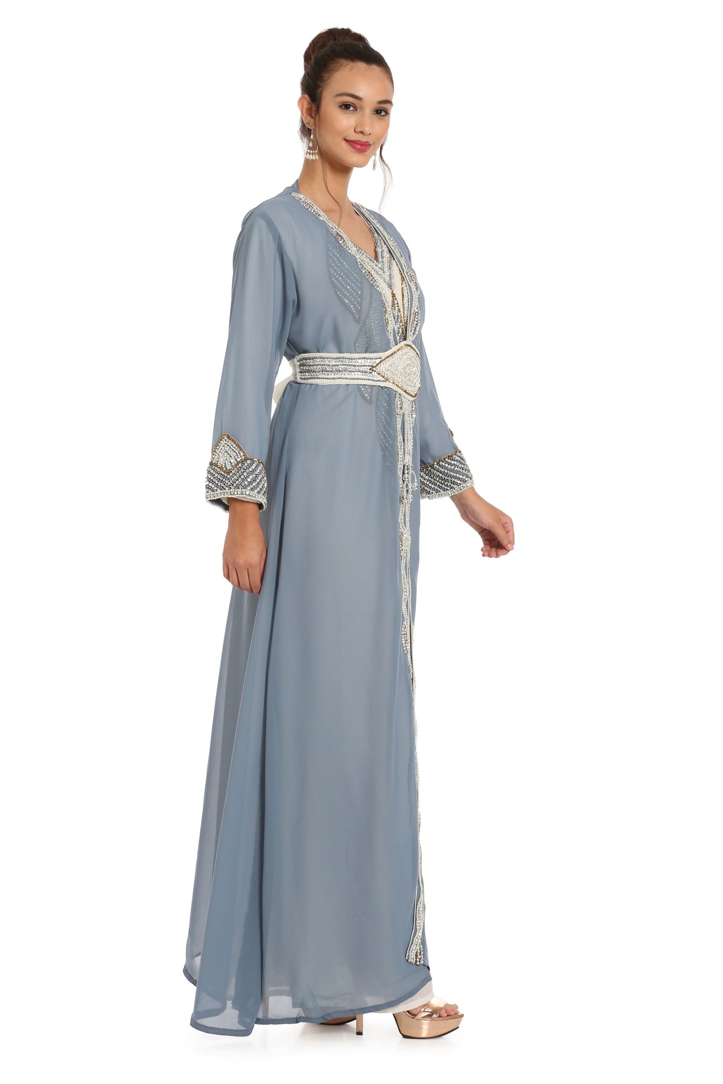 Grey Kaftan with Hand Embroidery 3pcs Maxi dress