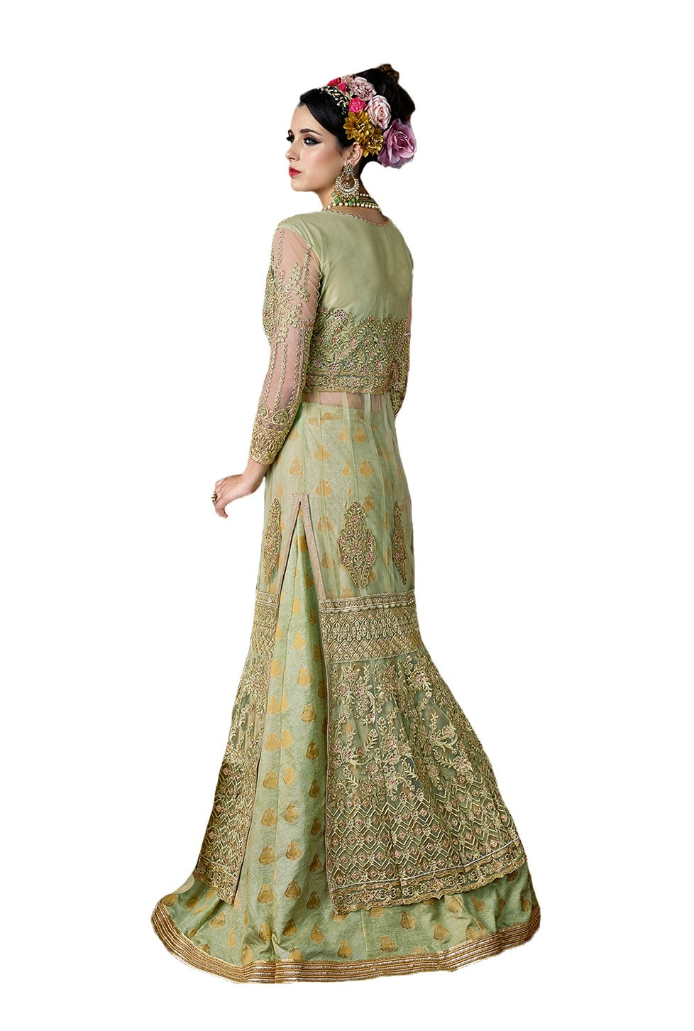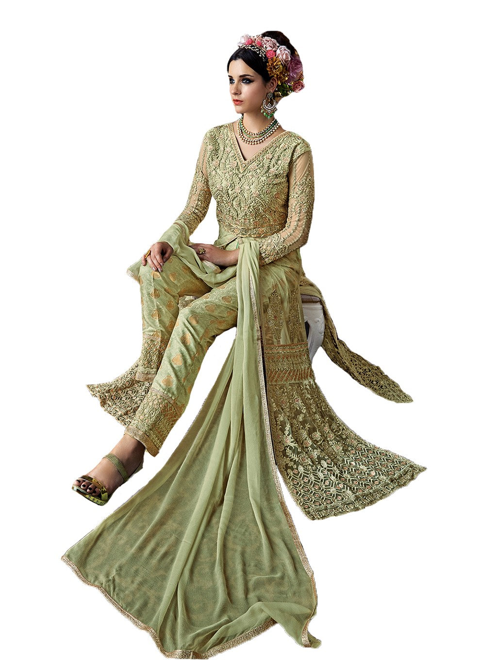 beads creativities in golden color. It comes in a 3 piece set, embroidered all over the dress to embellish your charm. This outstanding Kaftan piece comprises matchless Georgette fabric with a mixture of beautiful lining beneath the machine-embroidered area with golden designs, boosting your grace and magnetism, and enables your attractiveness to skyrocket your bridesmaid presence in the wedding occasion.