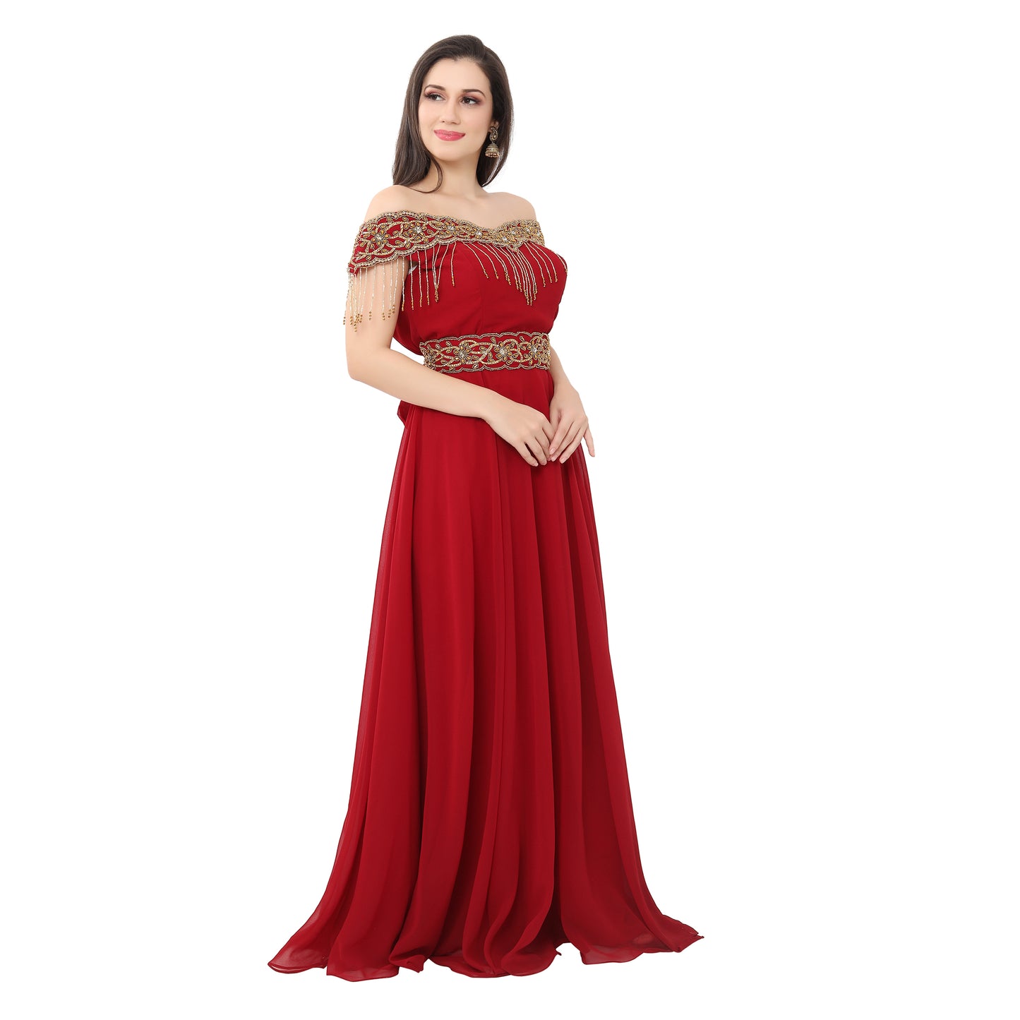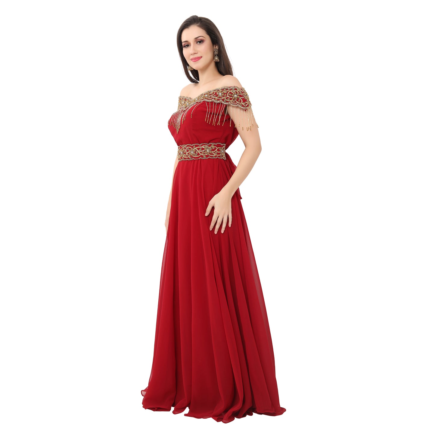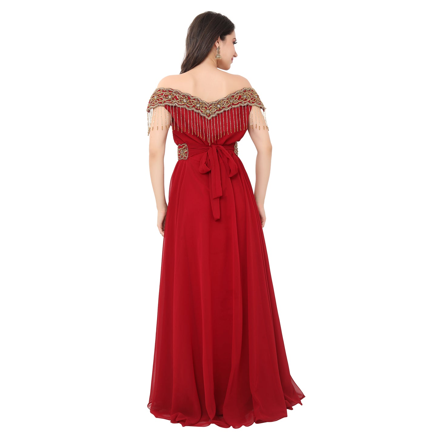 Red Prom Gown Bridesmaid Dress with Golden Tassels